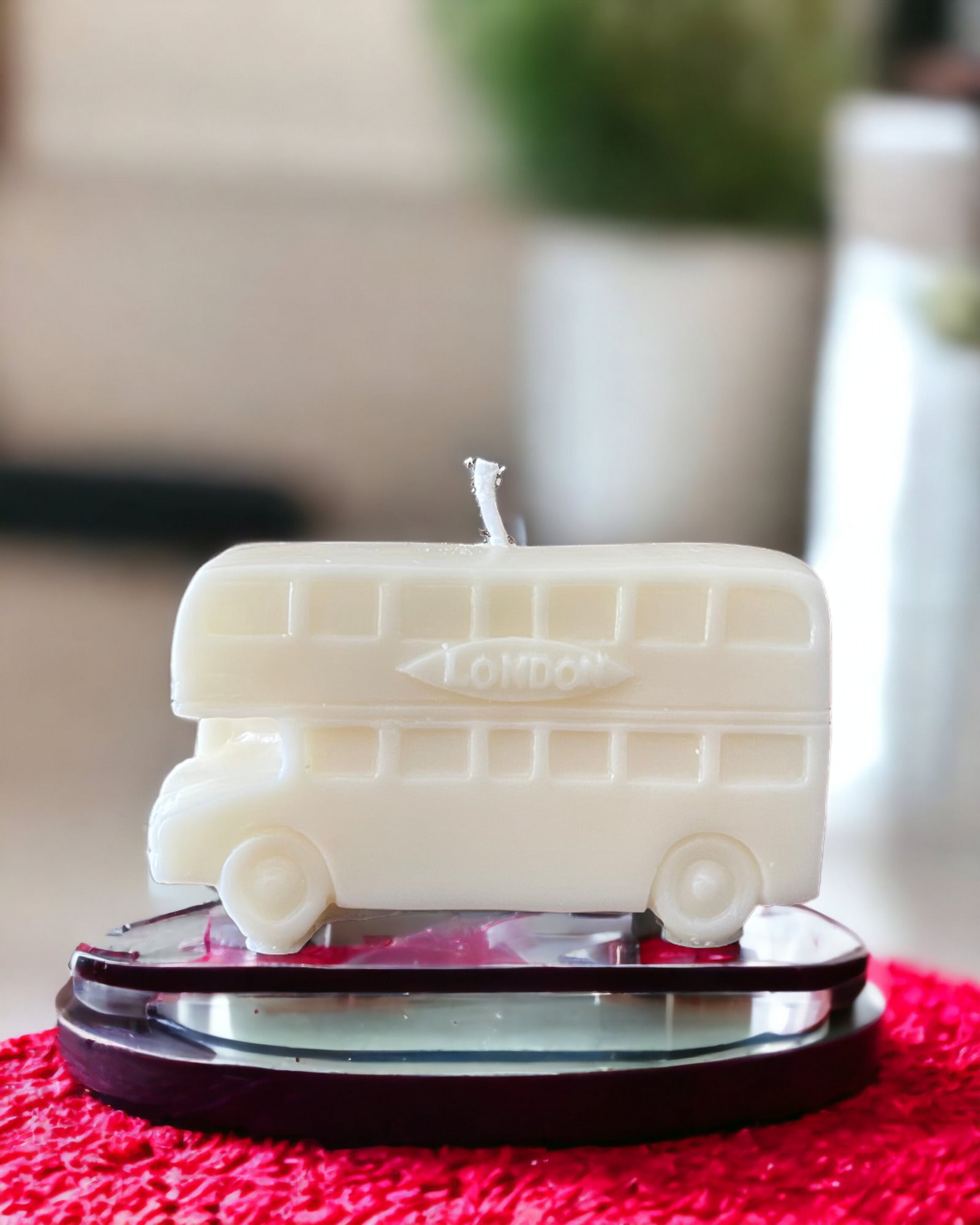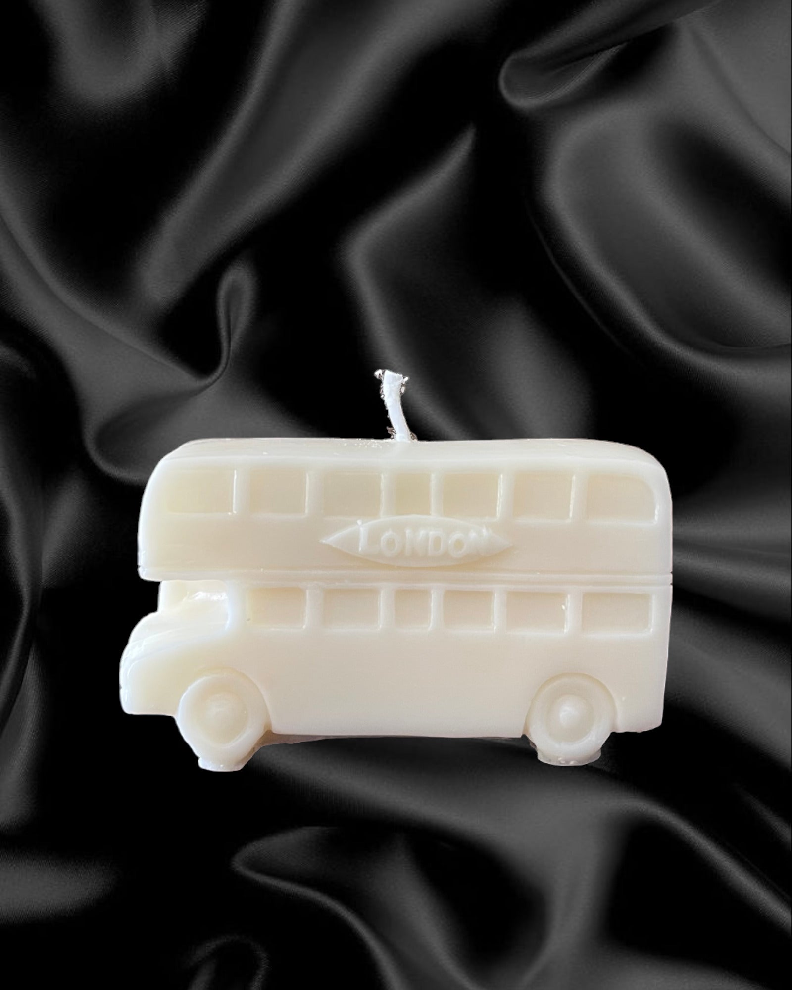 Candela inodore in cera di soia che rappresenta il famosissimo Bus di Londra.