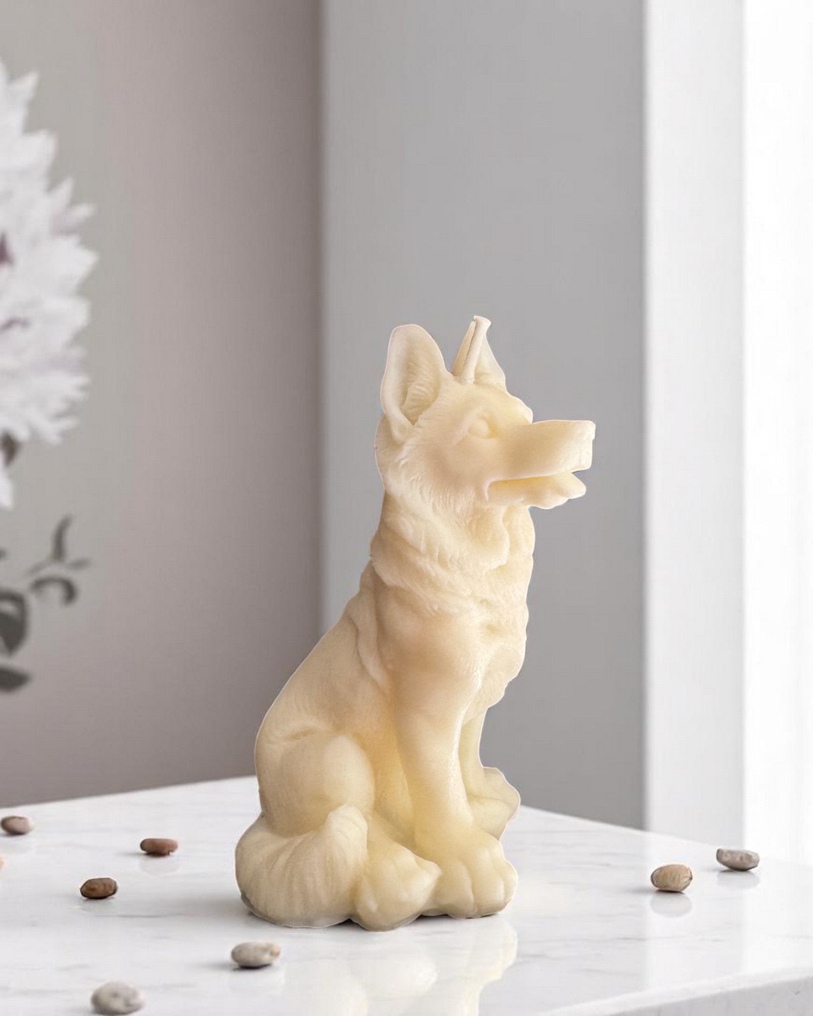 Candela realizzata con cura che raffigura un Pastore Tedesco.