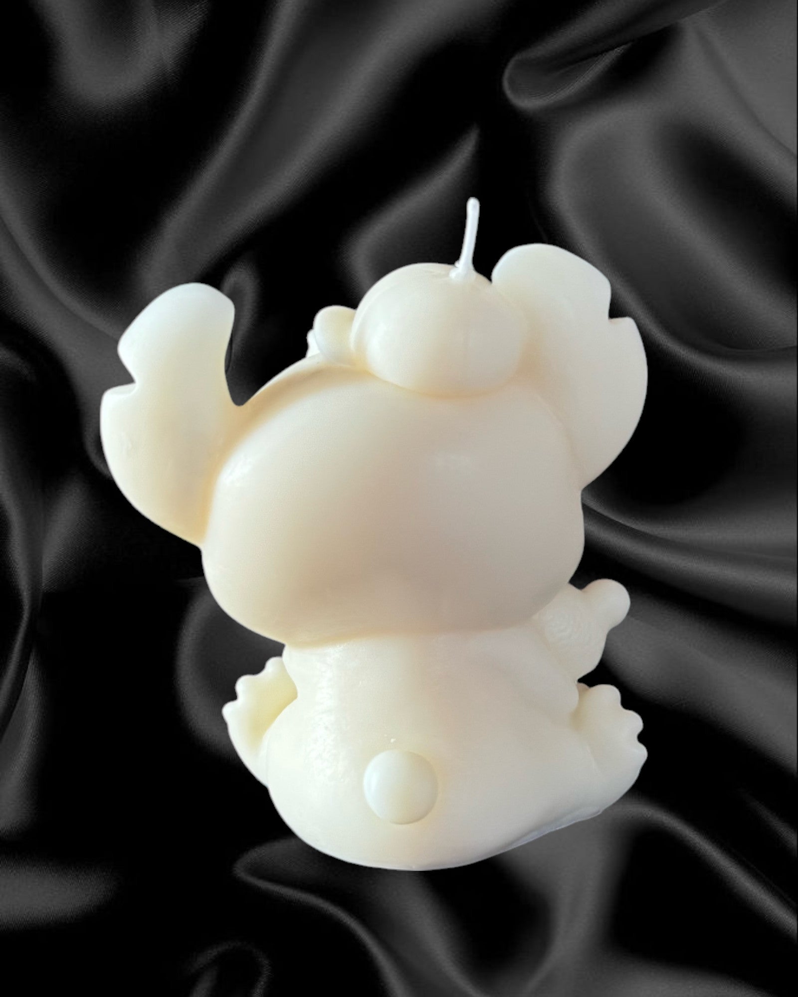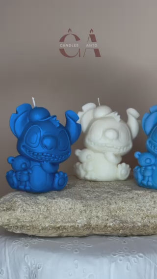 La candela a forma di Stitch, il simpatico alieno blu dal film "Lilo & Stitch", perfetta per dare un tocco unico a un evento speciale. La candela è realizzata con cera di alta qualità che riproduce fedelmente i dettagli del personaggio: le grandi orecchie rotonde e sporgenti, il muso espressivo con il caratteristico sorriso, e gli occhi grandi e vivaci che sembrano pieni di vita.
